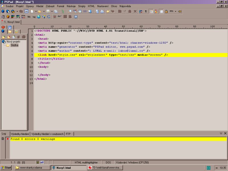 Proto je třeba zvolit vhodný nástroj pro tvorbu www stránek Osobně doporučuji PSPad. Není rozhodně tak "úžasný" jako Microsoft FrontPage, ale rozhodně Vám nebude vnucovat "svou verzi" stránek. Kromě toho se v něm dají i vcelku stravitelně editovat i kaskádové styly (CSS).